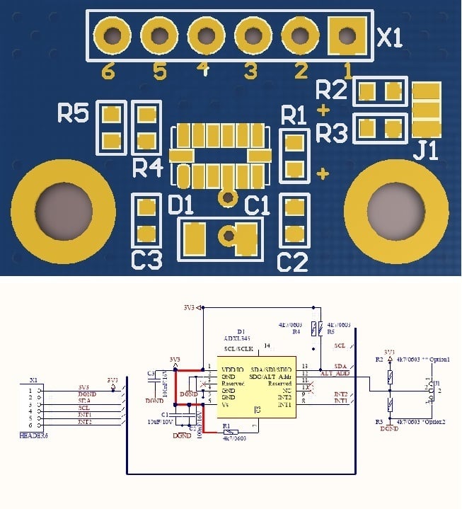 ADXL345.PCBDOC, ADXL345.SchDOC, ADXL345.PCBPRJ - Altium Designer 15 PCB Project